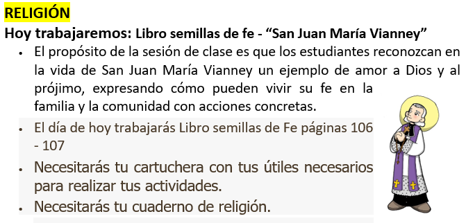 - Necesitarás tu cartuchera con tus útiles necesarios para realizar tus actividades.